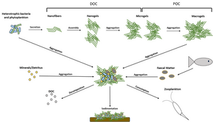 Figure 1: Schematic of marine snow (MS) formation and sedimentation